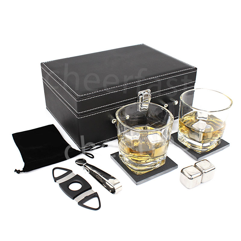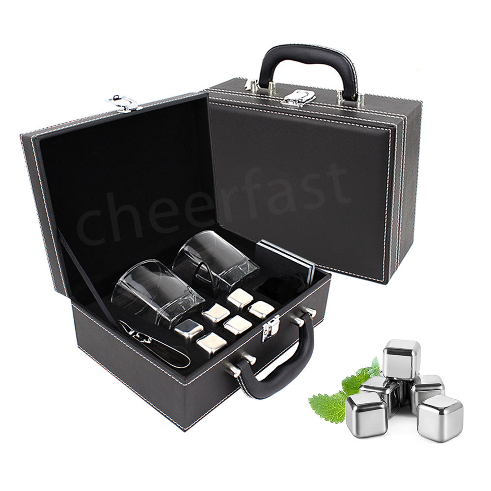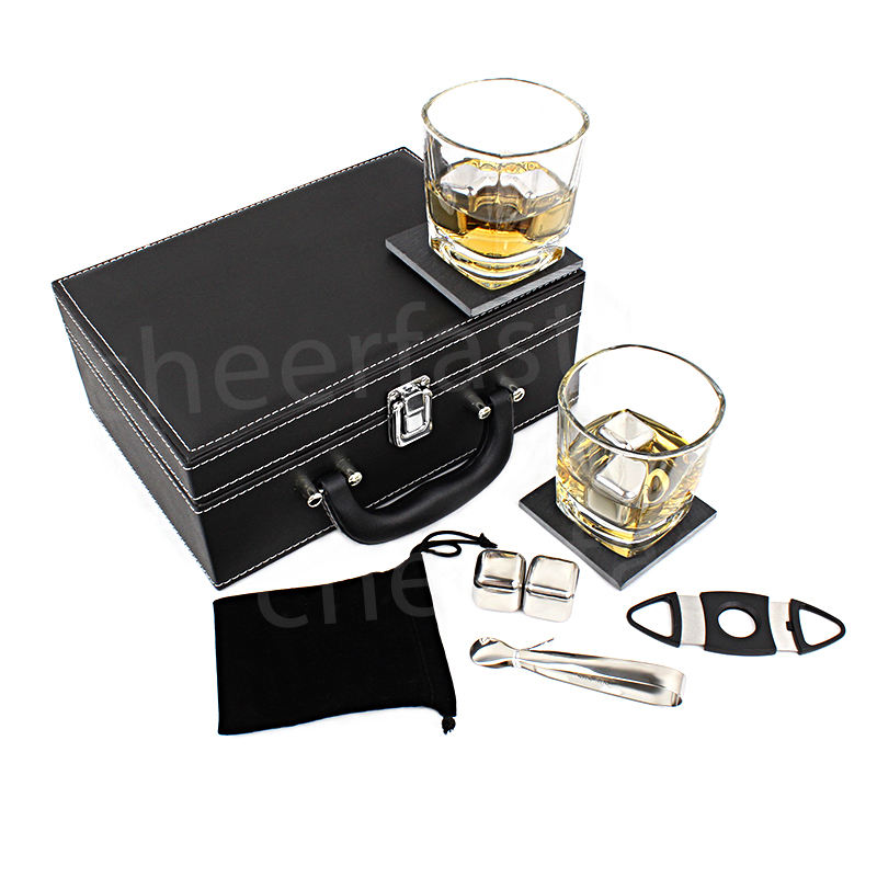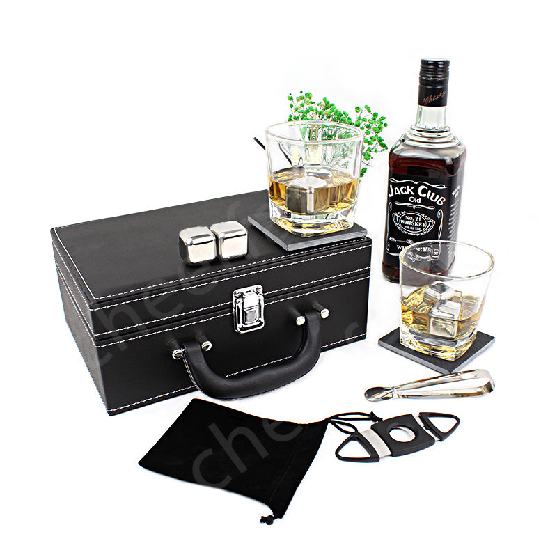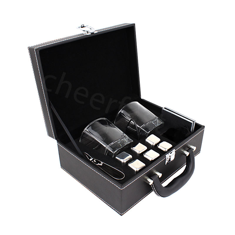 Whiskey Cooling Ice Cube Gift Set in PU Leather Box With Hand