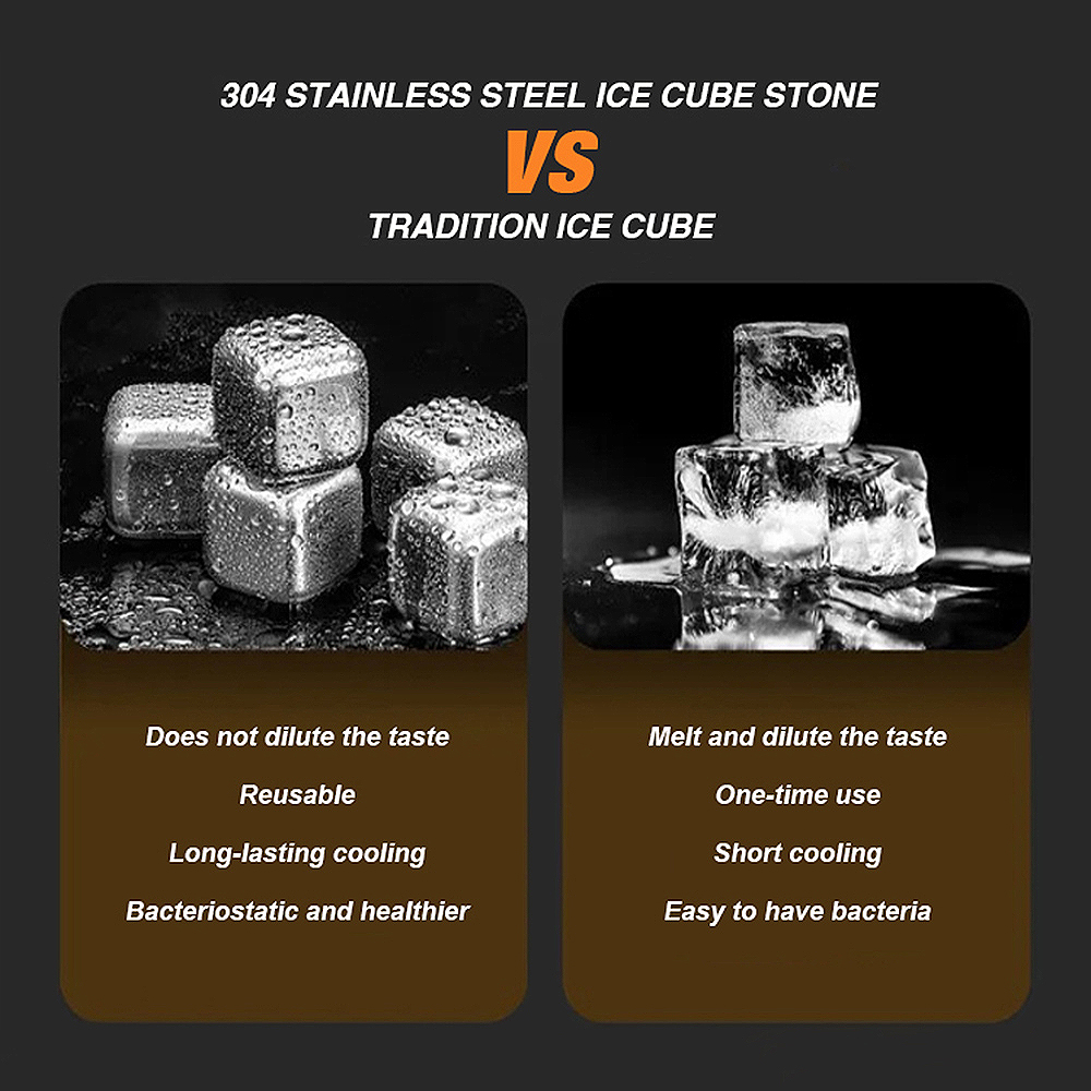 *COOLING TASTING - Whisey glasses set. Just put whiskey stainless steel ice cubes in the fridge in advance, then add 2 - 3 stones into glasses, enjoy the cool taste any time and place.