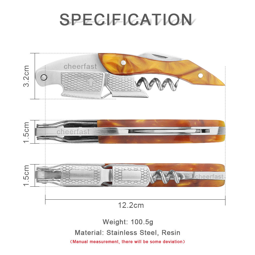 This resin handle wine corkscrews can easily open your best wines. When using the classic double hinge pivot function, you can even unload the longest and most fragile cork of the wine bottle Stuffed. The corkscrew is as big as your hand and fits in your pocket. It is the perfect tool for wine lovers, waiters, waitresses, or bartenders.