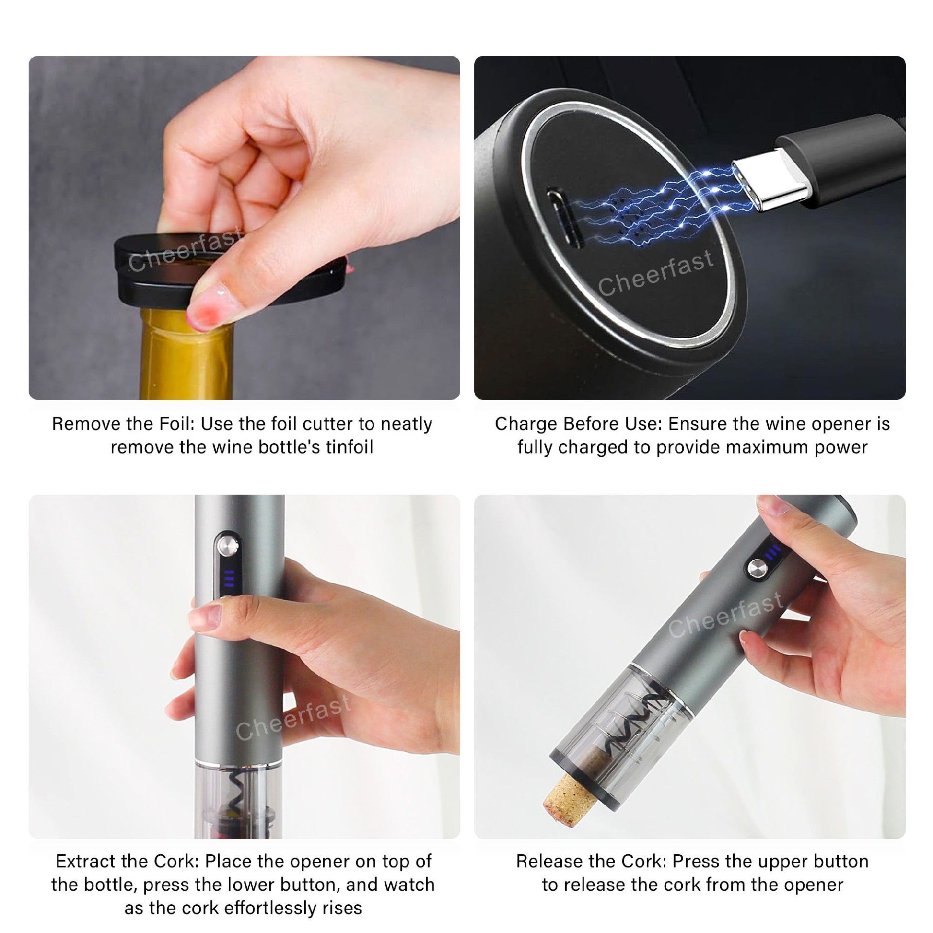 Rechargeable Wine Opener With Long Battery Life: Say goodbye to disposable batteries. Our rechargeable electric wine bottle opener charges quickly and opens up to 30 bottles per full charge. It's the ultimate wine lover gadget for home bars, kitchens, and wine cellars.
