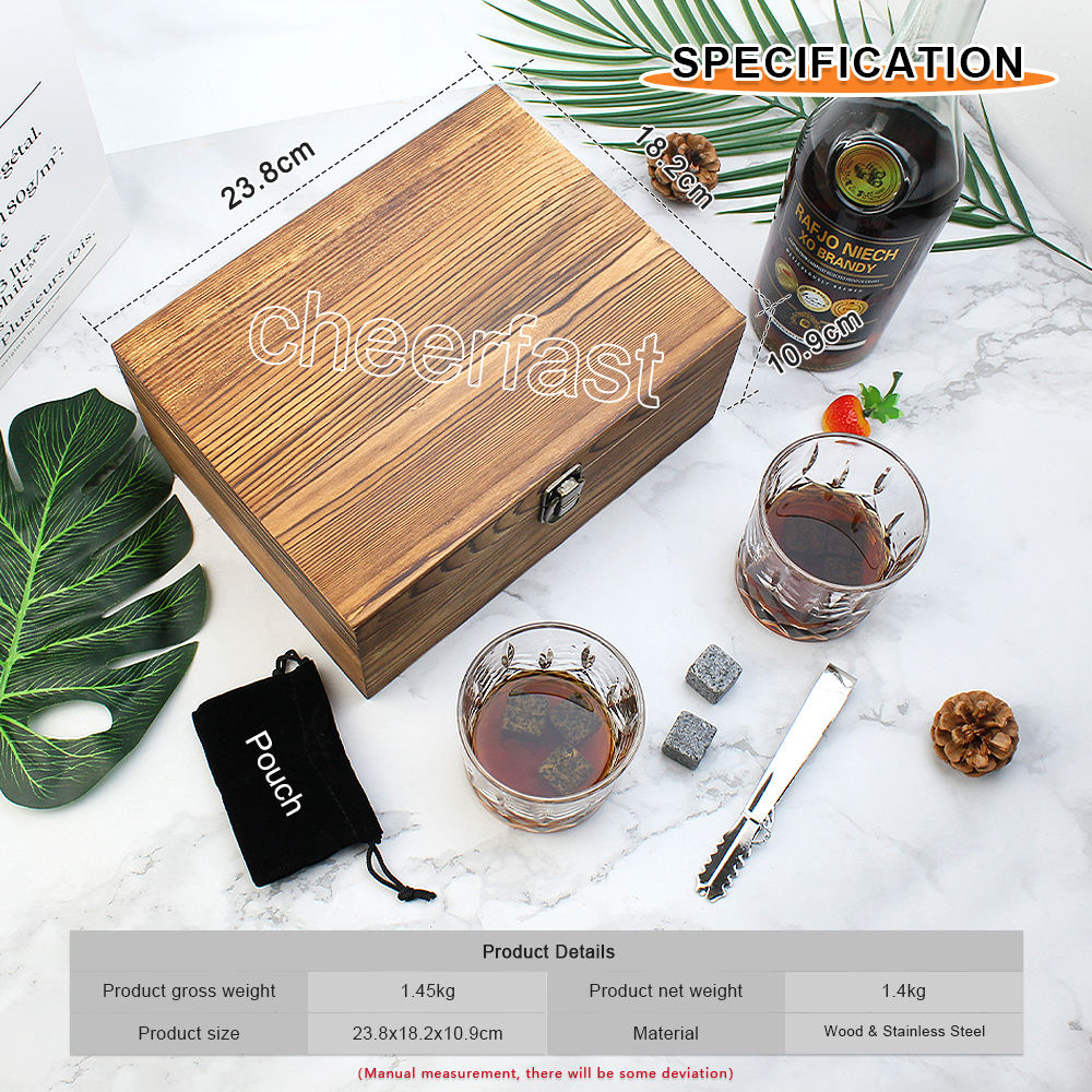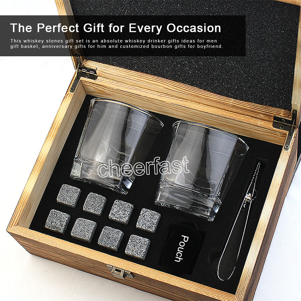 All-In-One Whiskey Lover's Gift Box This exquisitely crafted gift set includes everything a whiskey enthusiast desires: 1 premium lead-free whiskey glass and 8 natural granite chilling rocks, elegantly presented in a luxurious velvet storage bag. The included tongs add a touch of sophistication, making this the ultimate bourbon-lover’s ensemble. Premium Quality Whiskey Set Whiskey Stones: Made from 100% natural granite, our chilling rocks deliver the perfect chill without diluting your whiskey—preserving its rich flavor. Lead-Free Glass: The included high-clarity glass is crafted from premium, non-toxic materials for a pure sipping experience. Reusable & Easy Care: Simply rinse the stones after use and store them in the freezer for 4 hours before your next tasting. No More Watery Whiskey Tired of ice ruining your drink? Our granite stones chill your whiskey without melting or shedding water, ensuring every sip stays bold and smooth. Designed to be gentle on glassware, they’re compatible with any whiskey tumbler. The Perfect Gift for Every Occasion Ideal for birthdays, anniversaries, Father’s Day, weddings, retirements, or holidays like Christmas and New Year’s, this set is a timeless gift for connoisseurs and casual drinkers alike.