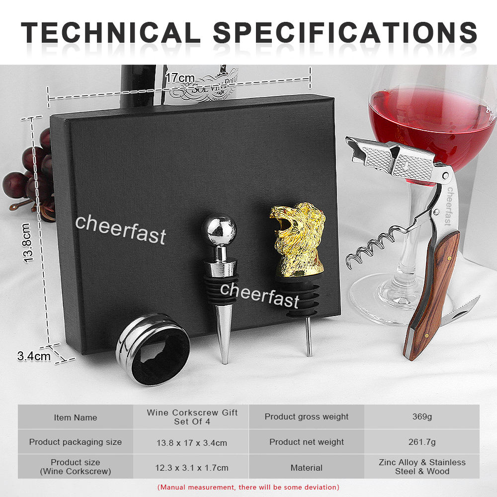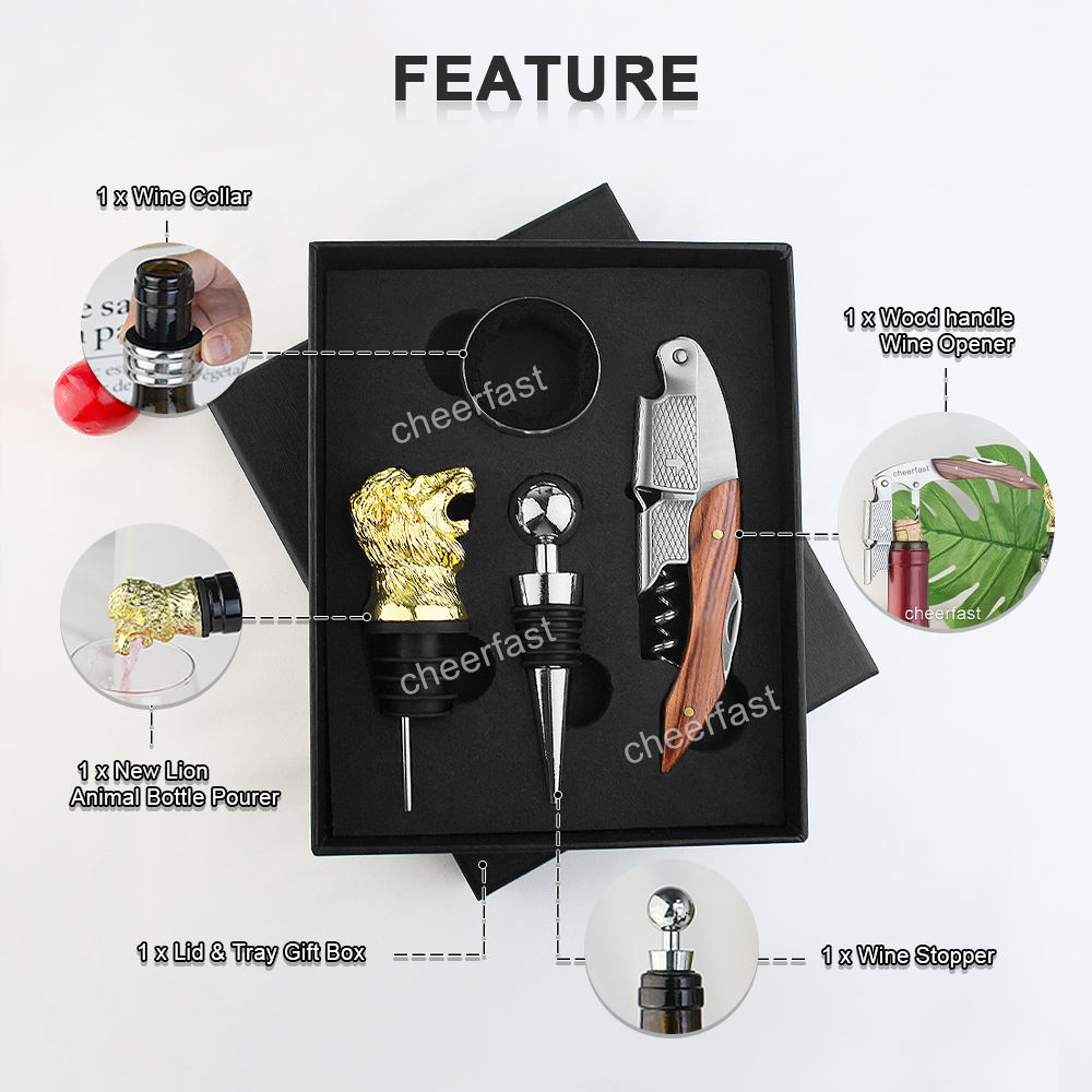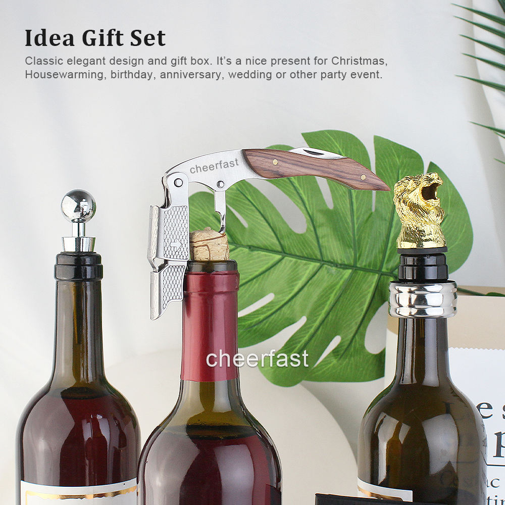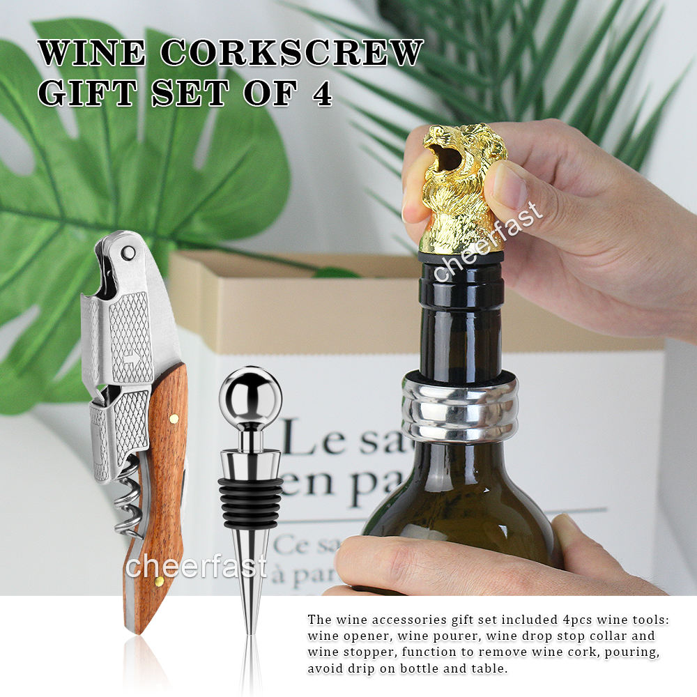 The wine accessories gift set included 4pcs wine tools: wine opener, animal shape wine pourer, wine drop stop collar and wine stopper, function to remove wine cork, pouring, avoid drip on bottle and table. Idea Gift Set: Classic elegant design and gift box. Creative animal wine stopper pourer, fine workmanship, novelty and interesting, It’s a nice present for Christmas, Housewarming, birthday, anniversary, wedding or other party event. Great for travel - This four piece travel set’s light weight and compact size make it easy to pack and store on any trip. Perfect Wine Accesory: For home bar or other occasions, improve quality of life. Leading to safe and enjoyable wine drinking!