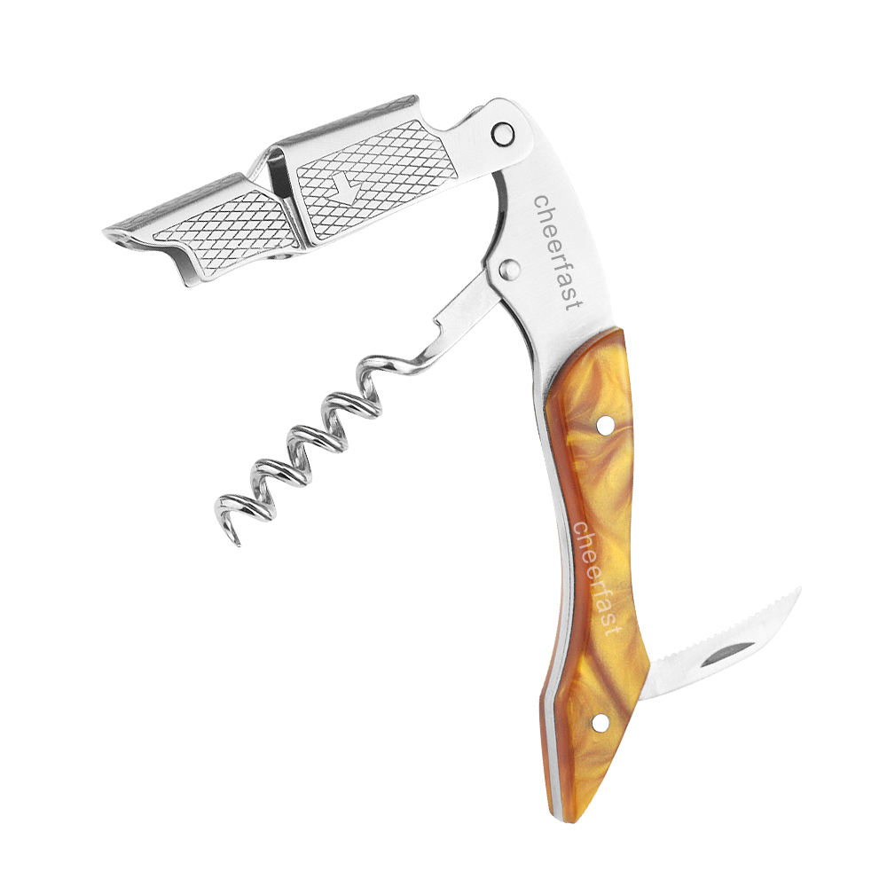 Work on All Cork Types and Beer Bottles :The resin handle wine waiter corkscrew that can handle an older, natural, fragile, or synthetic cork very well. Features integrated of wine opener, beer opener, and foil cutter, multi-functional and professional corkscrew.