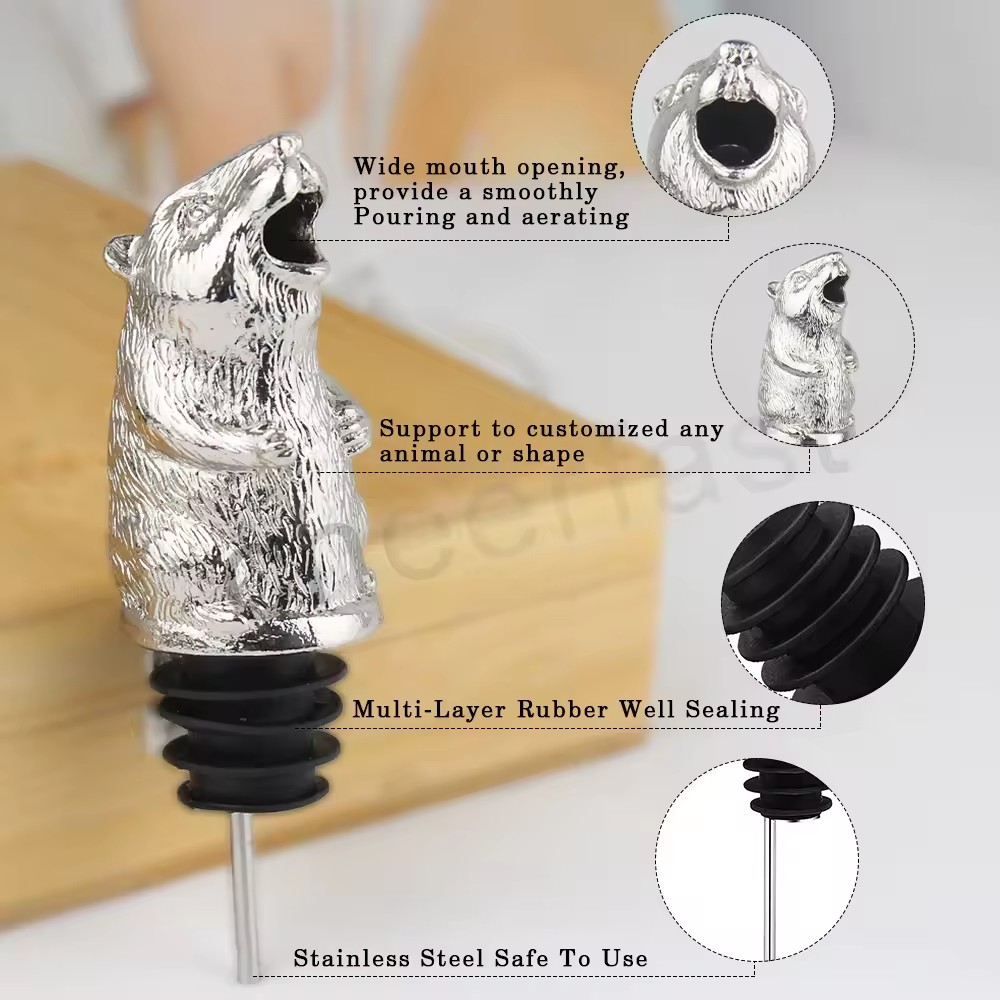 Support customizing any animal, any shape, if you like to customize new pourers or stoppers, please feel free to contact us, we are a factory for custom orders, we can meet your order requirements.