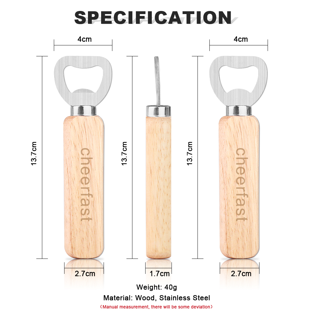 Easy to Store: The round hole on the top of the handle to hang it for easy storage. Suitable for most drink bottles in parties. Wood handle bottle opener is delicate and moderately sized, when not in use, it can be hung as a decoration